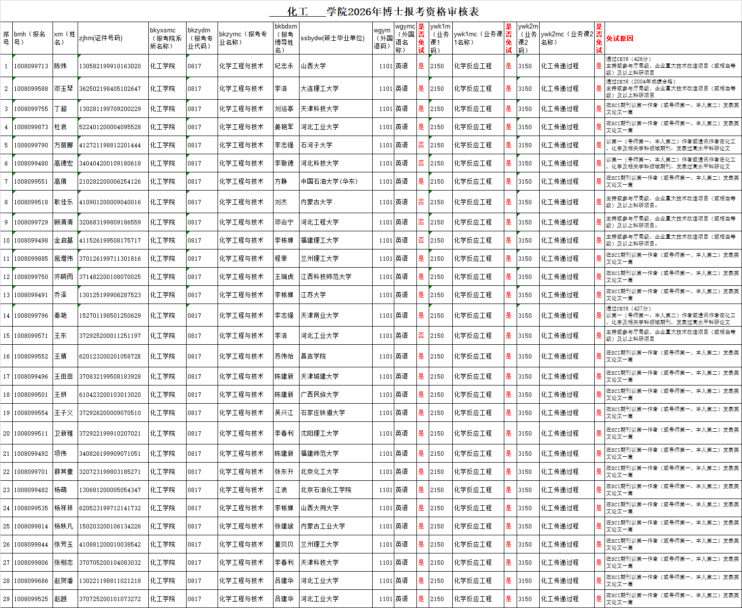 化工学院2026年普通招考(申请-考核制)招收博士研究生报考资格审核情况及复试安排