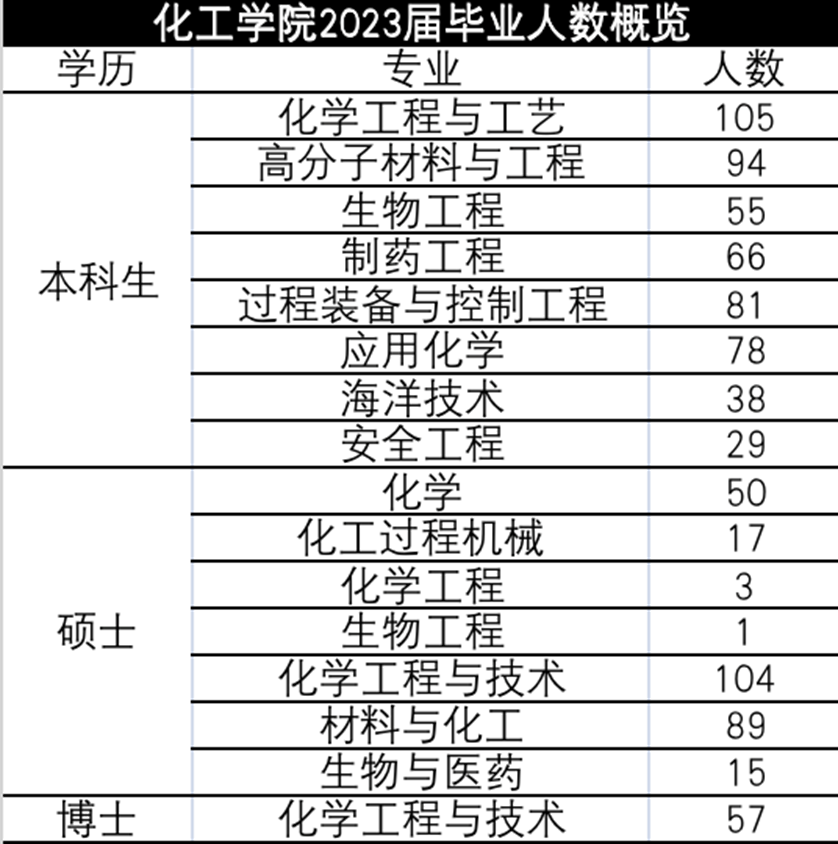 附:河北工业大学化工学院2024届毕业生人数概览